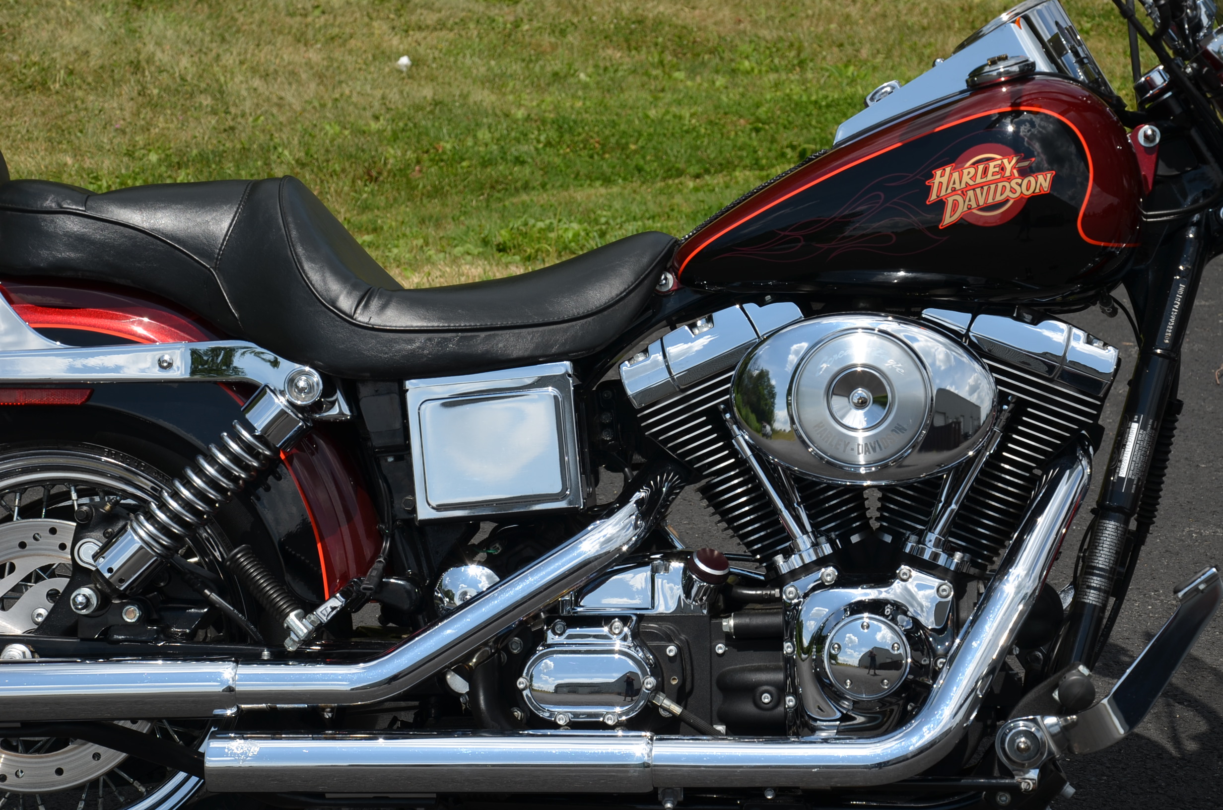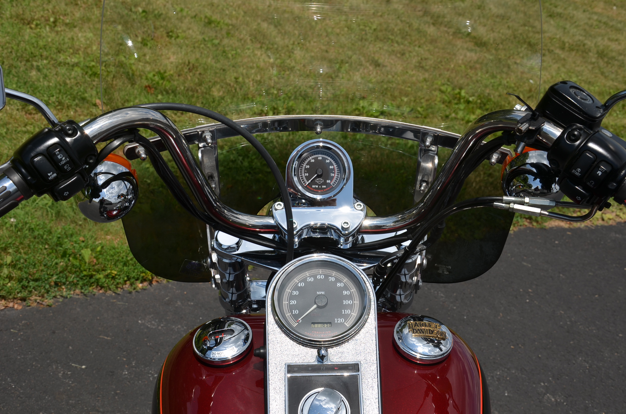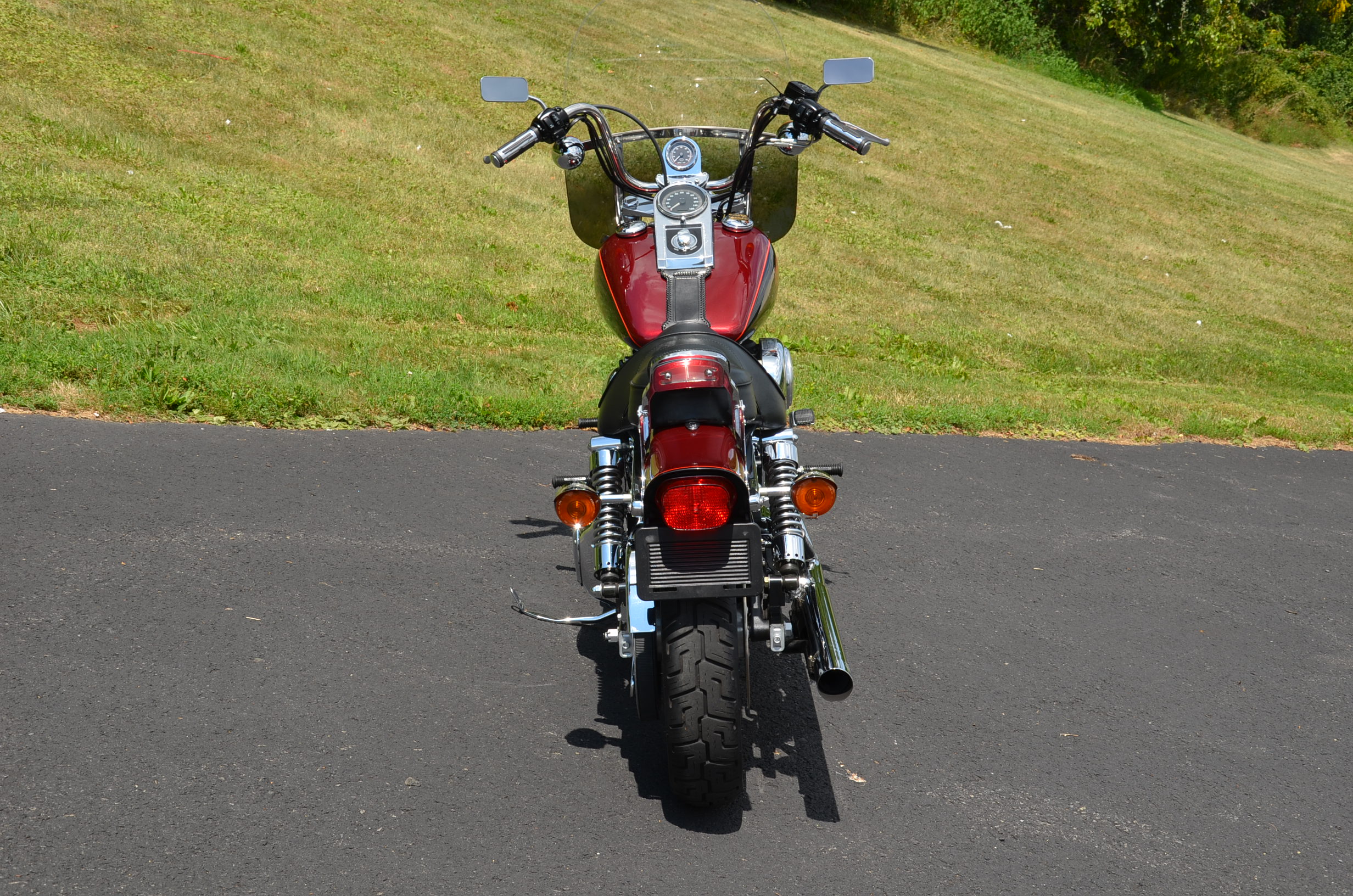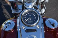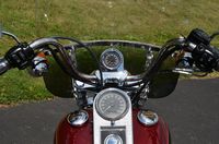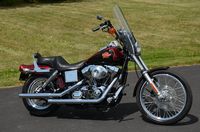 Local trade in. 2 tone Dark Metallic Red & Vivid Black. Only 11,938 miles. Extras include Screamin Eagle Stage 1 carb kit w/ high flow air cleaner, Vance & Hines staggered exhaust w/ heatshields, Screamin' Eagle chrome fork brace, short sissy bar, quick detachable windshield, chrome tachometer kit, chrome grips, custom mirrors, chrome belt guards, chrome pulley cover, chrome inner primary cover, & tons of factory chrome. Very well kept. Serviced, fresh fluids, & detailed. Only $8,995