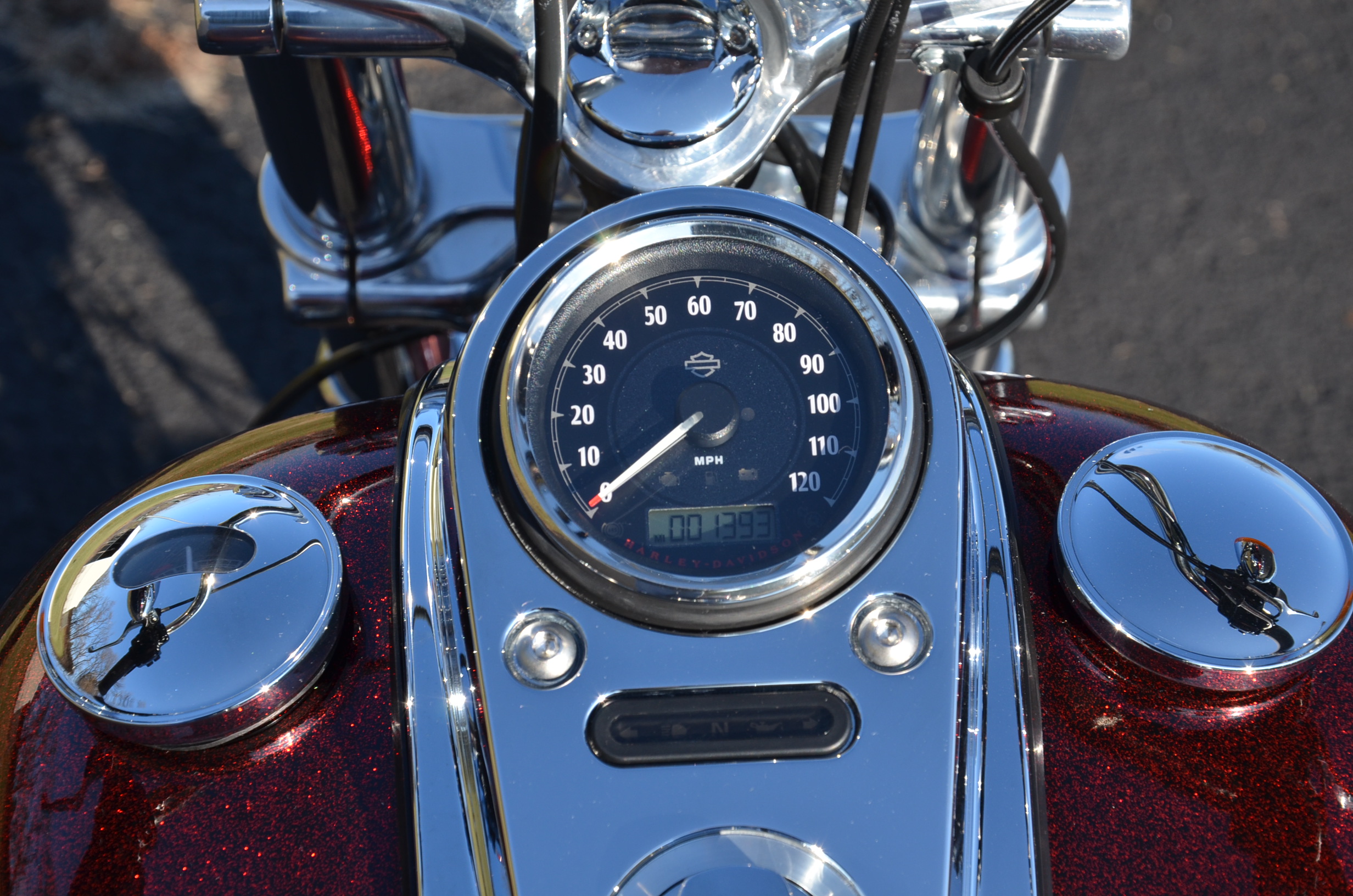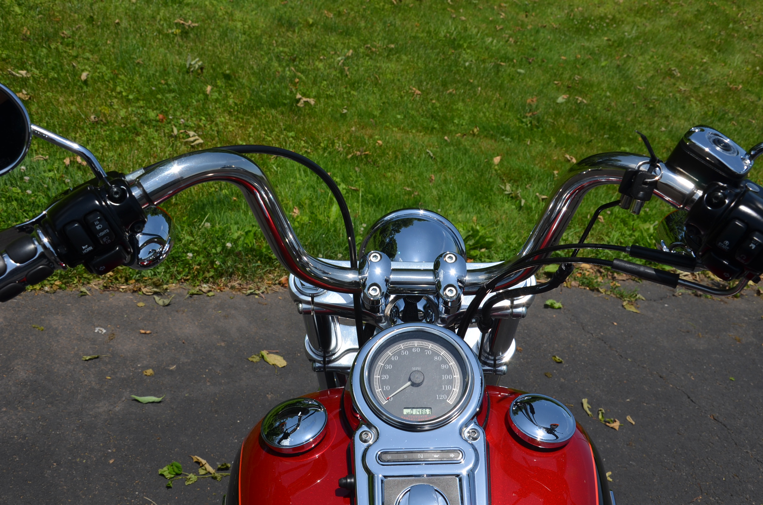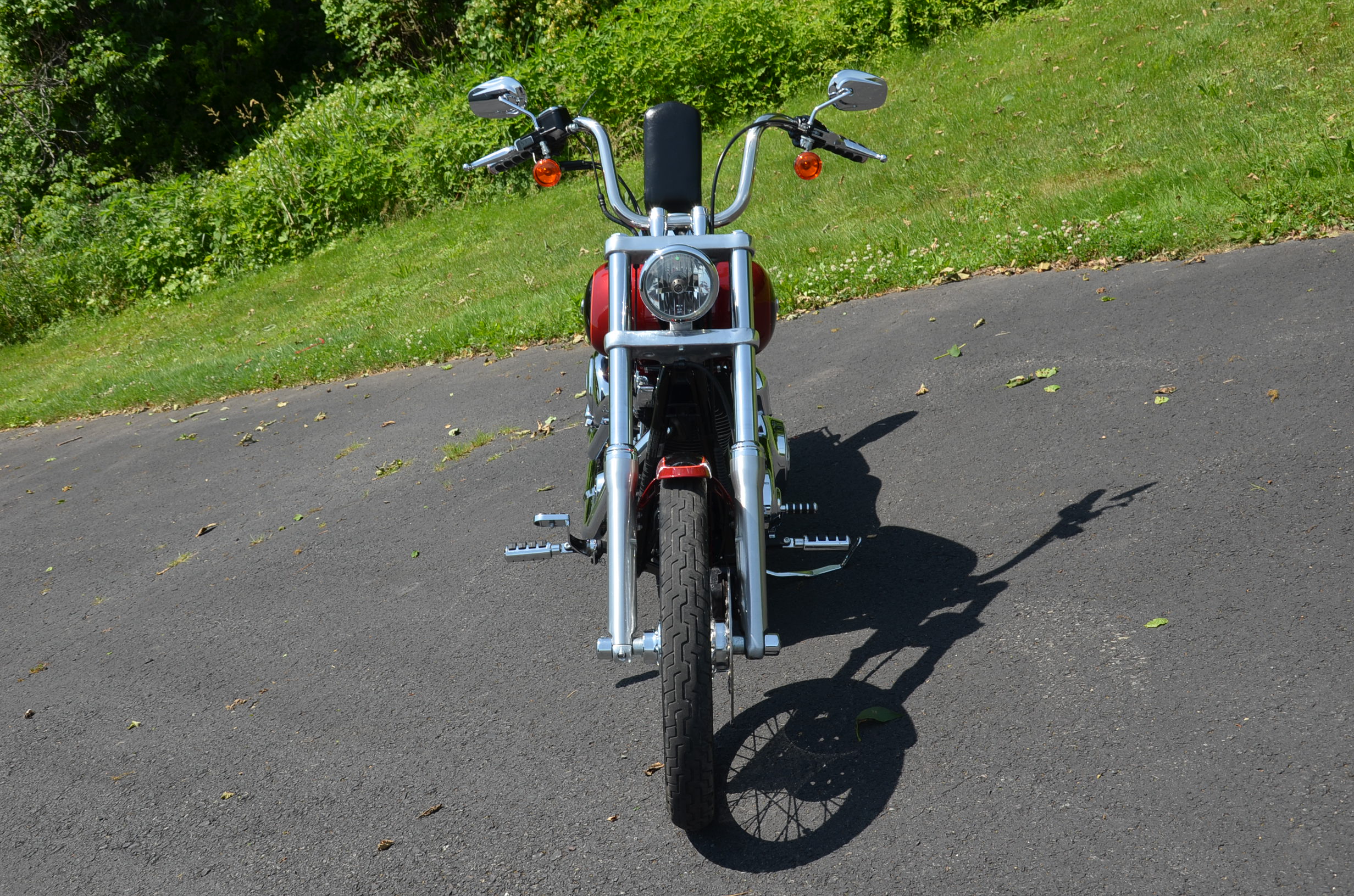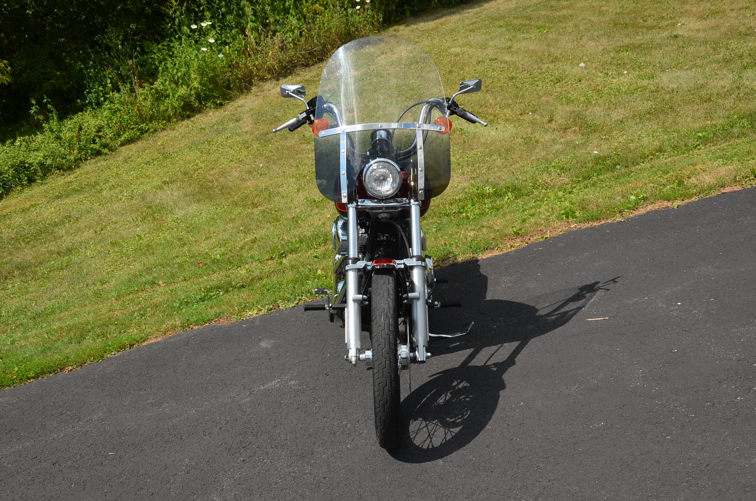 Local trade in. 2 tone Dark Metallic Red & Vivid Black. Only 11,938 miles. Extras include Screamin Eagle Stage 1 carb kit w/ high flow air cleaner, Vance & Hines staggered exhaust w/ heatshields, Screamin' Eagle chrome fork brace, short sissy bar, quick detachable windshield, chrome tachometer kit, chrome grips, custom mirrors, chrome belt guards, chrome pulley cover, chrome inner primary cover, & tons of factory chrome. Very well kept. Serviced, fresh fluids, & detailed. Only $8,995