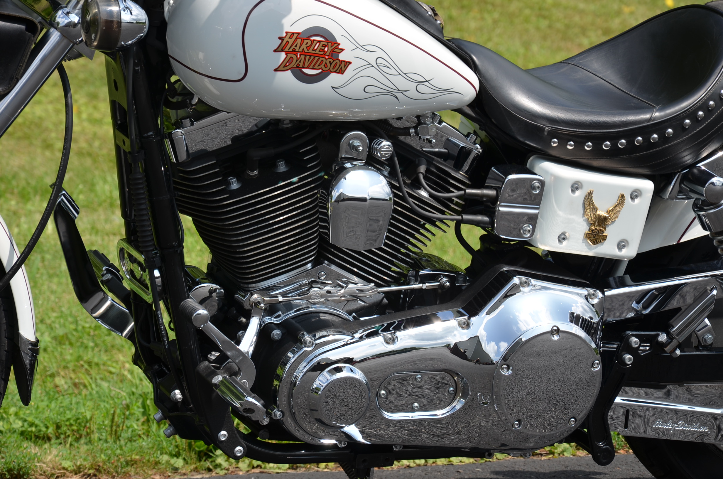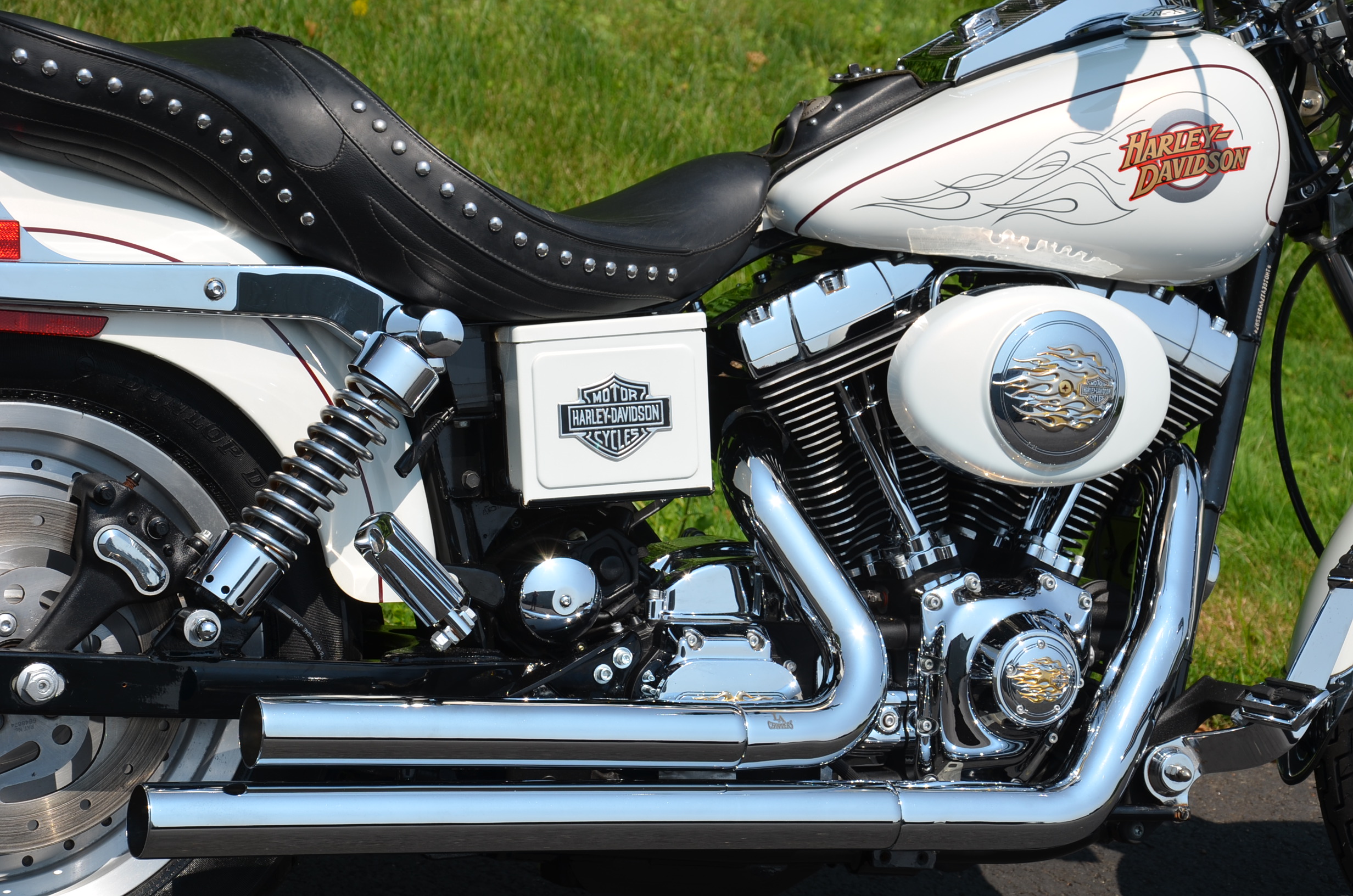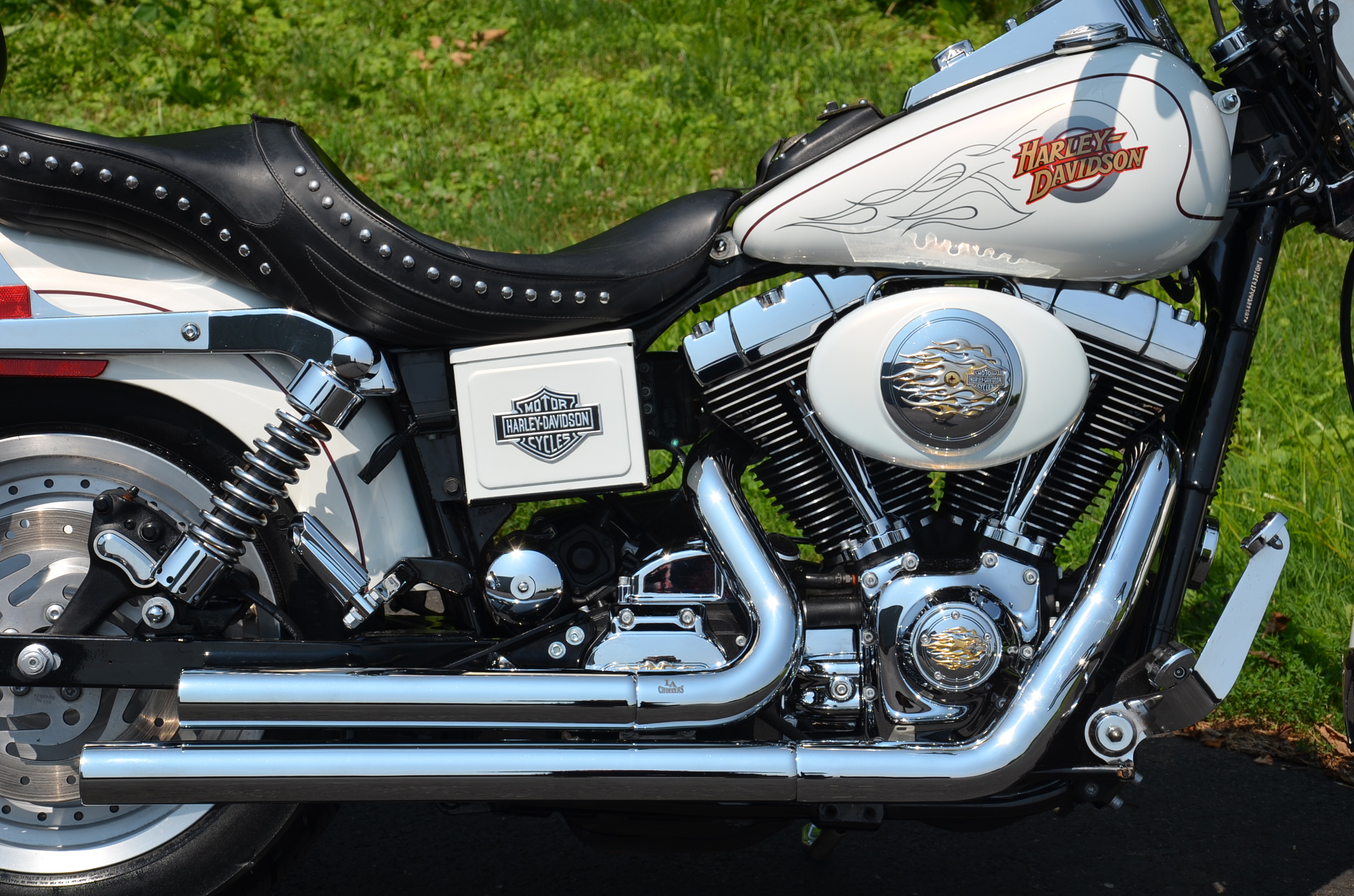 Local bike. Pearl White. Only 17,707 miles. Thousands in extras including Screamin Eagle Stage 1 carb kit w/ high flow air cleaner, new LA Choppers staggered exhaust w/ heatshields, Screamin Eagle' chrome fork brace, chrome lower legs/fork sliders, floating rotor, chrome HD lightning front wheel, solid rear wheel, chrome boot covers, Corbin leather studded touring seat w/ matching sissy bar pad, quick detachable windshield, studded leather tank pouch, dash trim, leather grips, chrome belt guards, turn signal relocation front & rear w/ smoked lenses, logo gas cap, color matched air cleaner cover, battery cover, & module cover, chrome switch housings, chrome front & rear pegs, chrome brake pedal, chrome luggage rack, hot toppers, shock bolt covers, chrome caliper inserts, chrome voltage regulator cover, leather fork bag, headlight bezel, chrome flame shift rod, chrome choke knob, chrome motor base cover, chrome oil line covers, battery tender lead, flame series air cleaner insert, cam cover, trans cover, & tons of factory chrome. Very well kept. Brand new Dunlop tires, serviced, fresh fluids, & detailed. Only $7,995