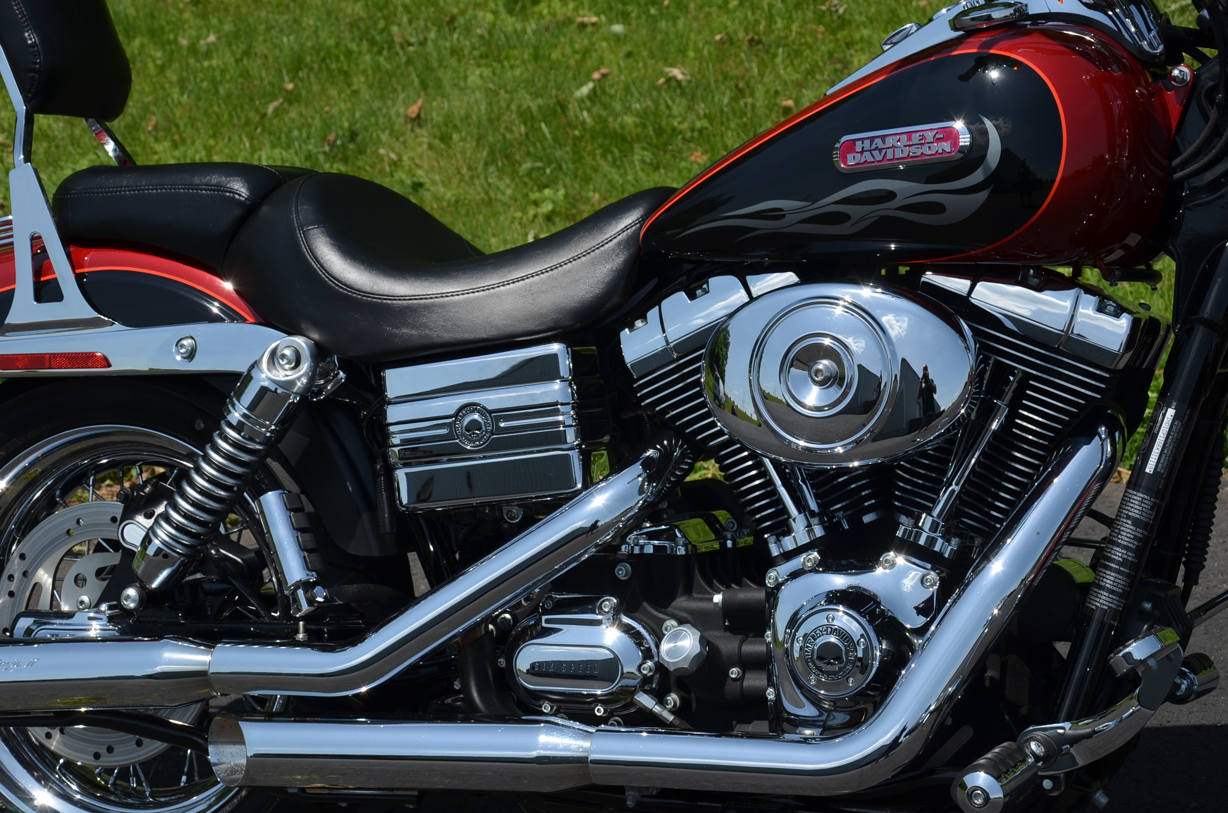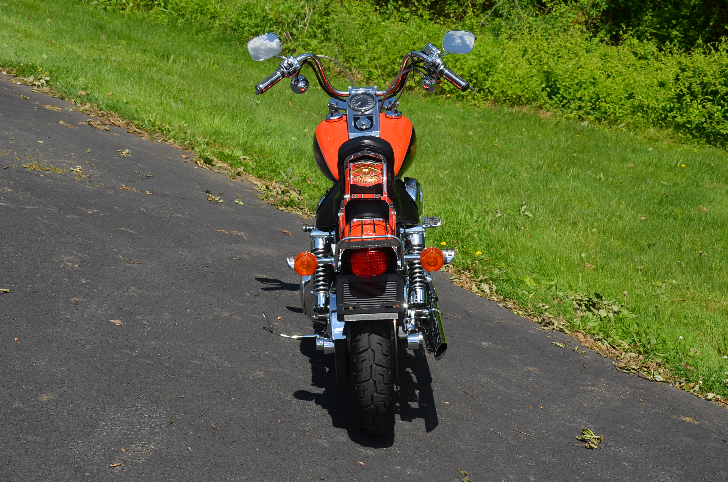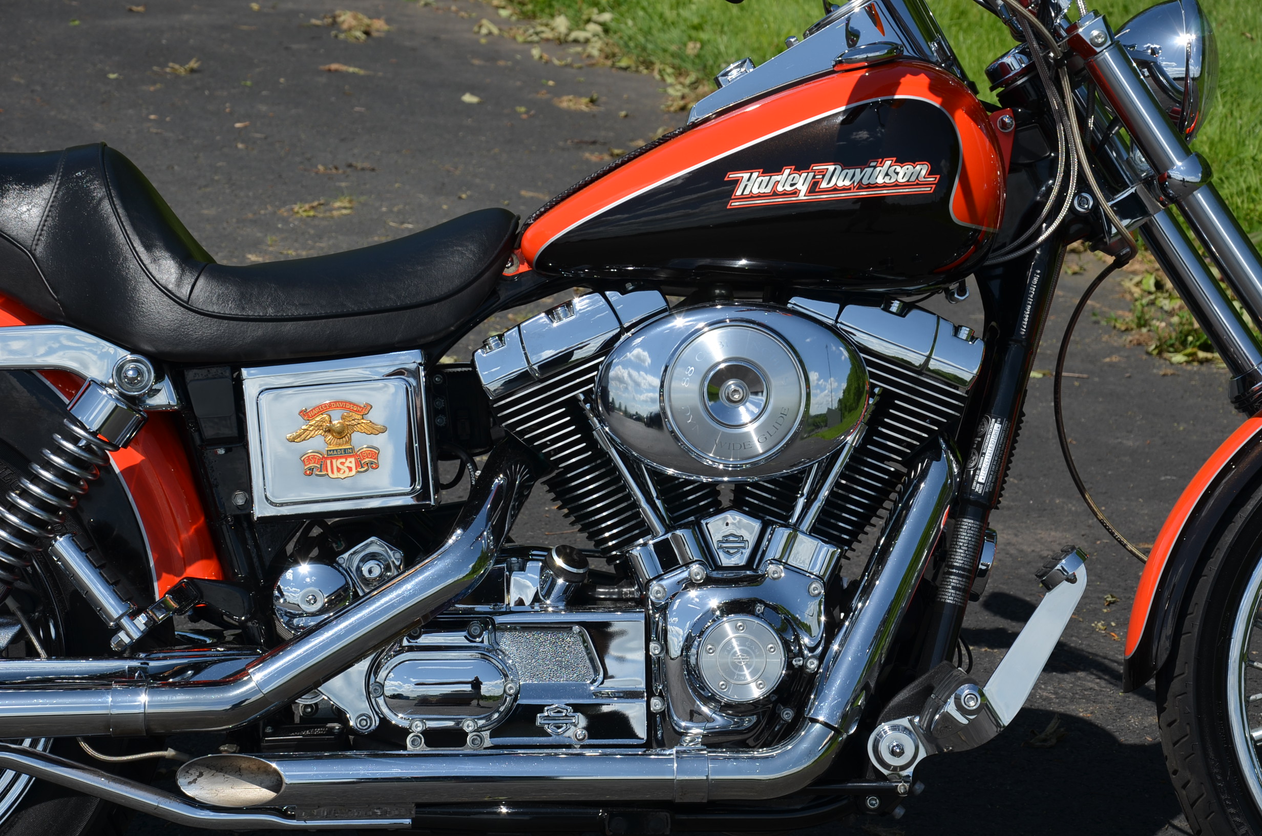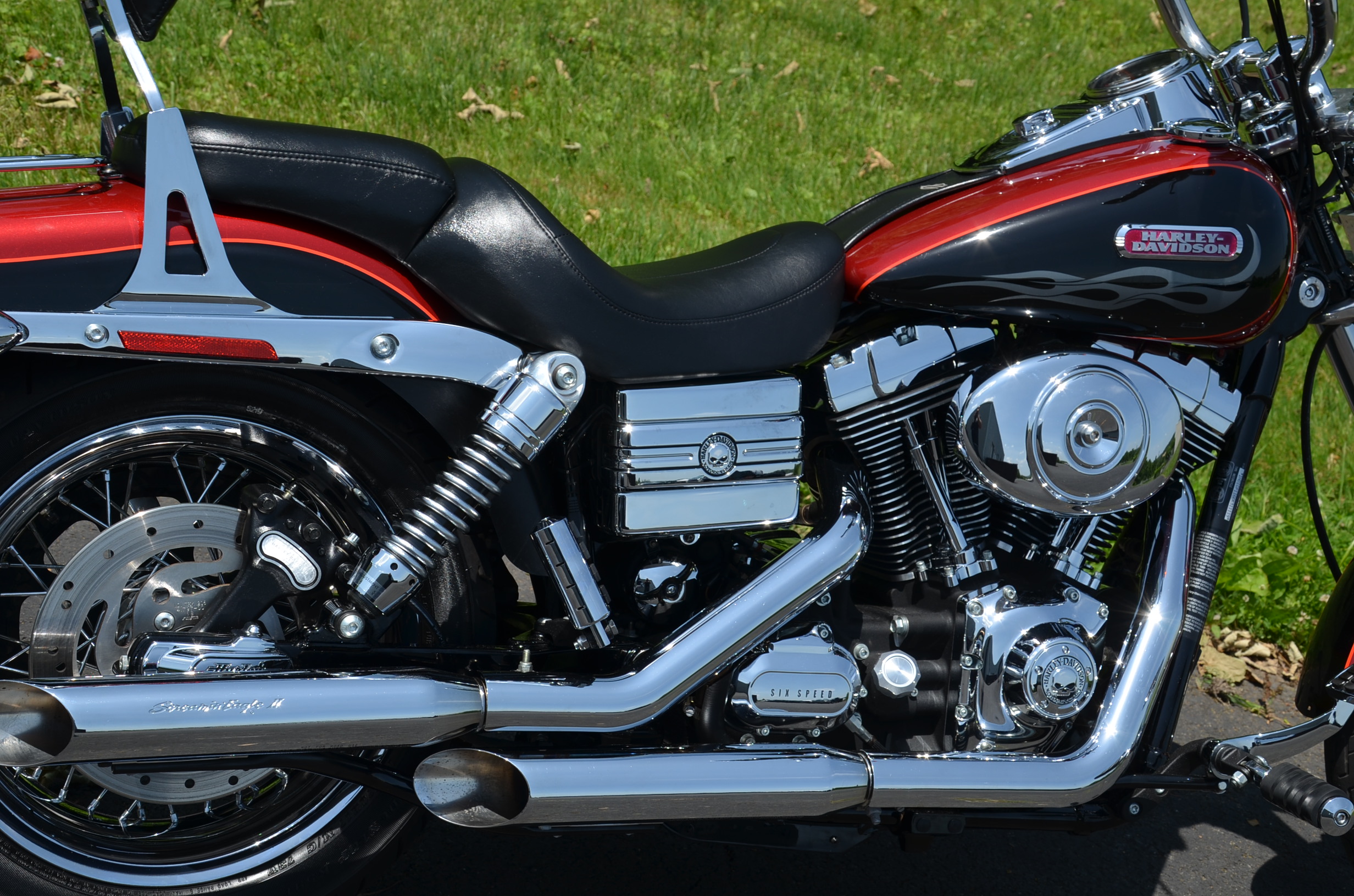 Local bike. Limited edition HD color shop 2 tone Vivid Black & Screamin’ Eagle Orange w/ special decals. Only 11,159 miles. Thousands in extras! Screamin’ Eagle Stage 1 carb kit w/ high flow air cleaner, Chrome Cycle Shack drag pipes exhaust w/ heatshields, chrome lower legs/sliders, chrome fork seal covers, all chrome hand controls, chrome switch housings, braided brake lines & cables, chrome swingarm, chrome caliper covers, chrome transmission interface, chrome tappet covers, chrome hot toppers, sissy bar, chrome luggage rack, chrome rear axle covers, chrome Kuryakn rider & passenger pegs, chrome shift peg, chrome grips, chrome belt guards, chrome voltage regulator cover, chrome pulley cover, chrome headbolt covers, & tons of factory chrome. Very well kept. Serviced, fresh fluids, & detailed. Only $8,995