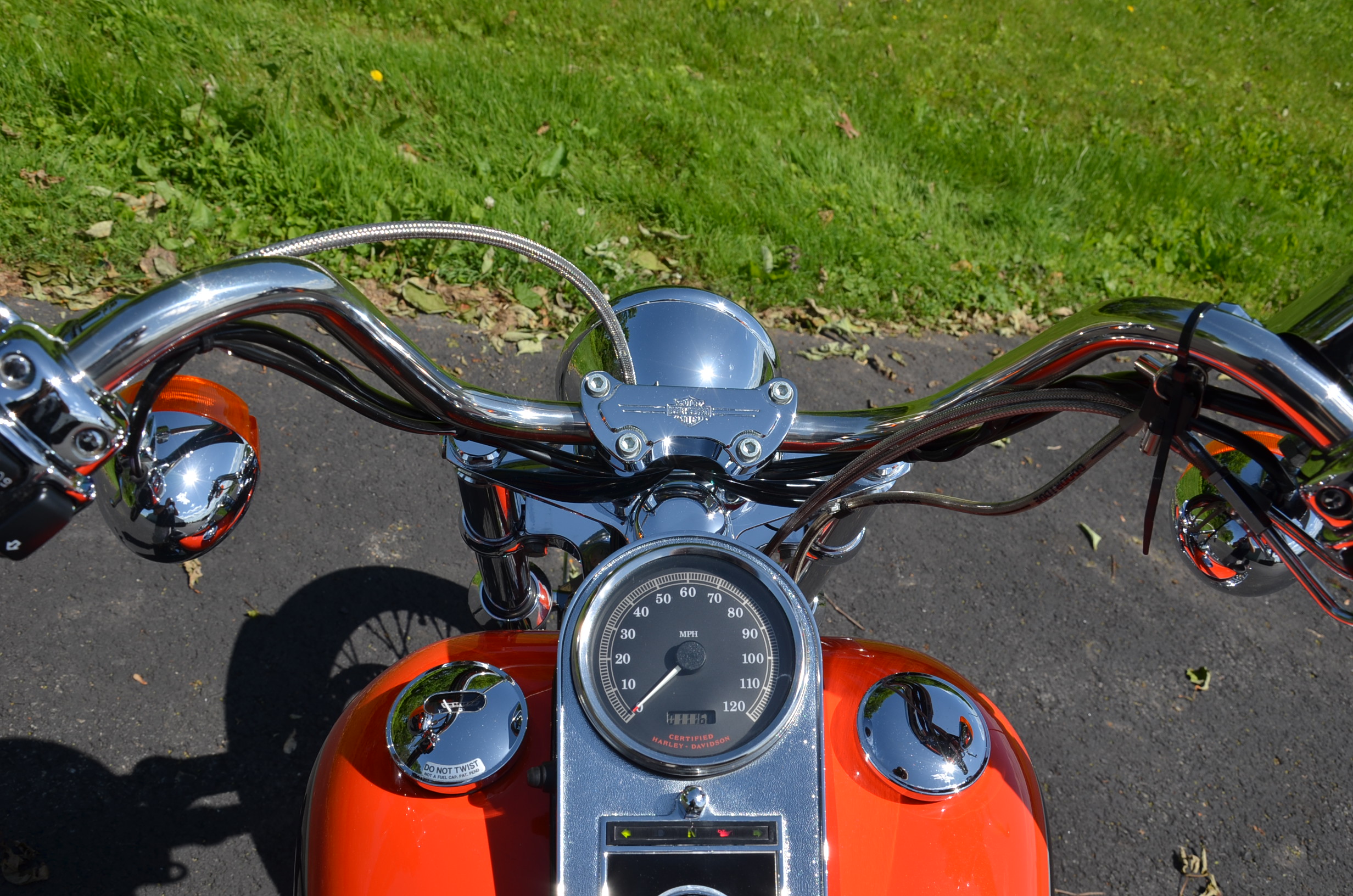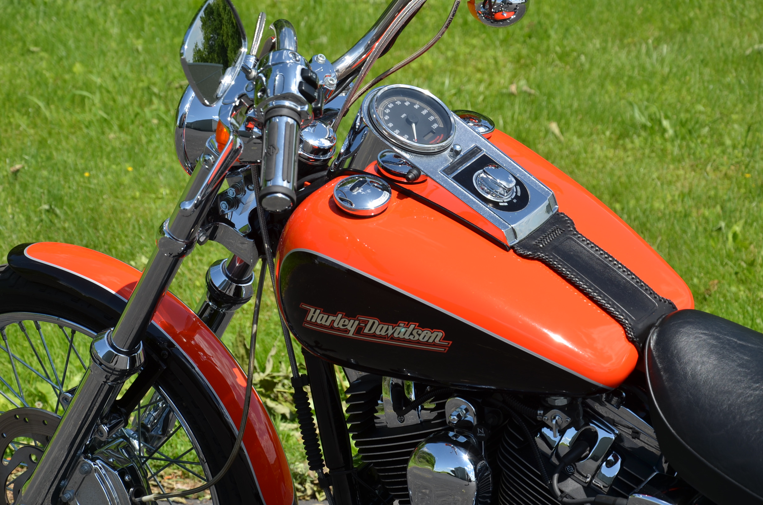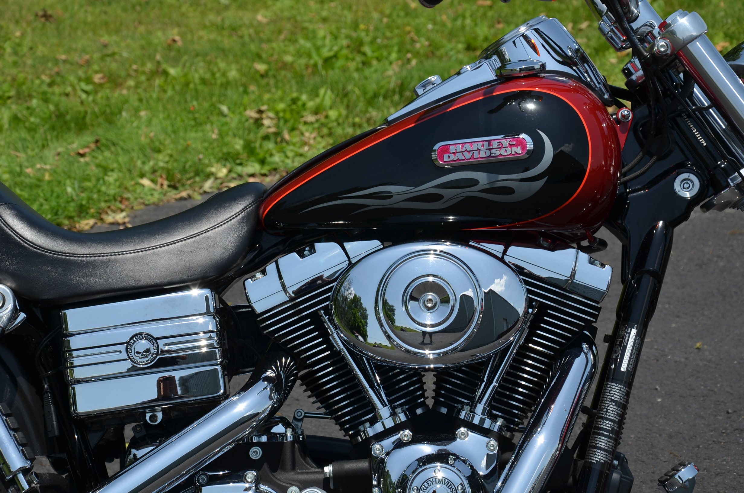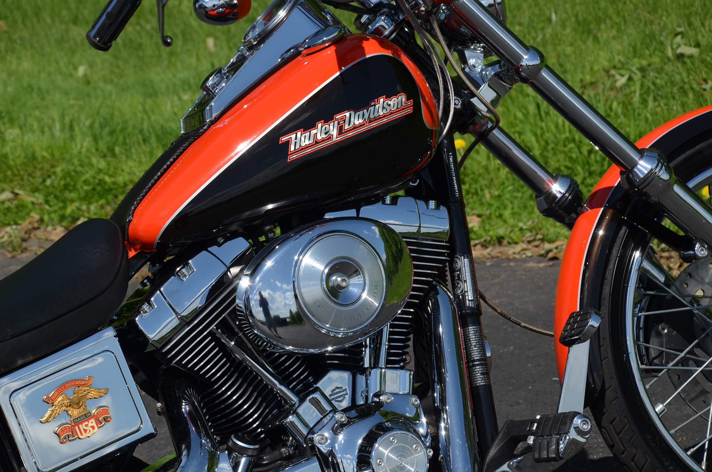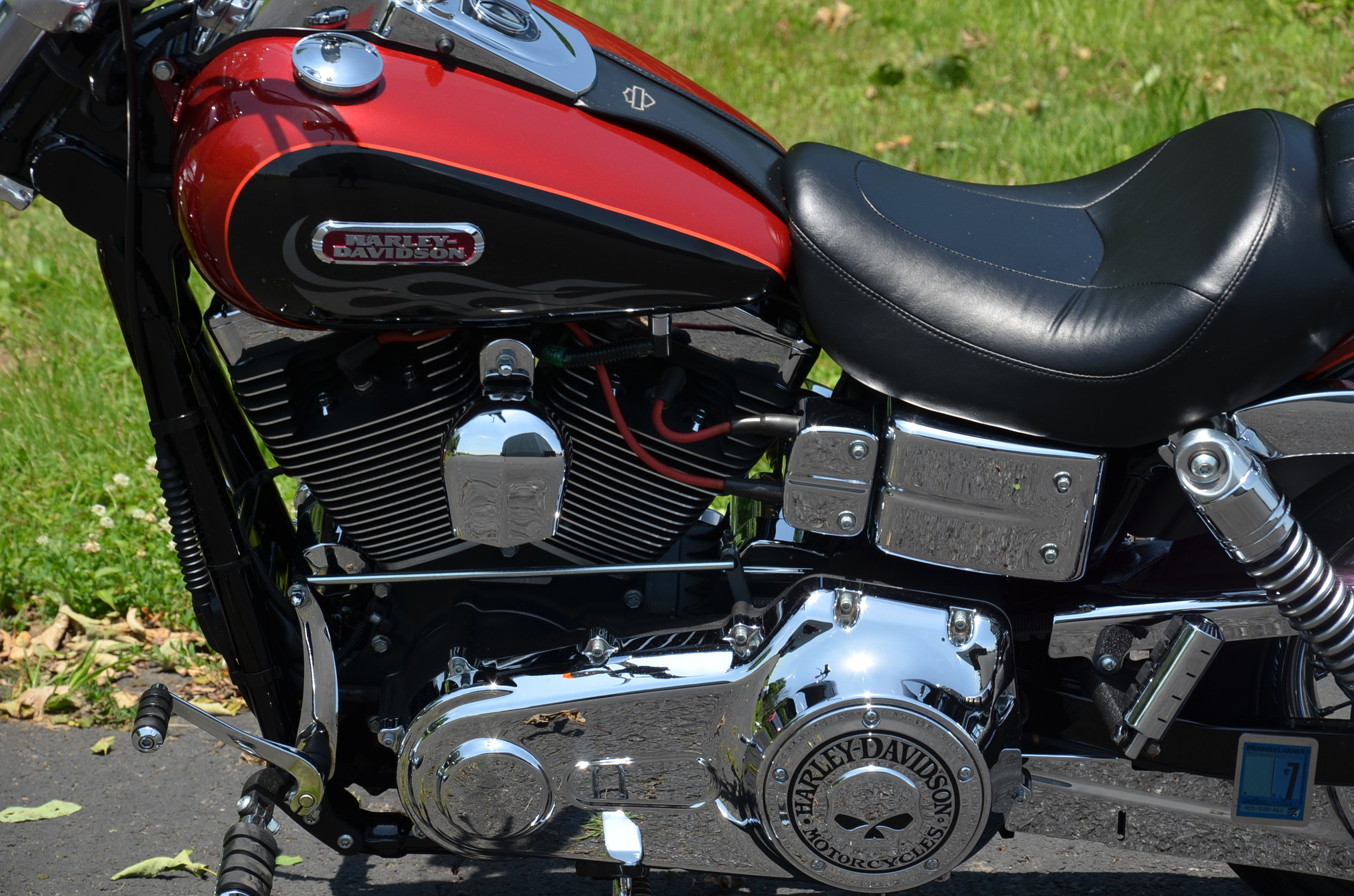 Local bike. Limited edition HD color shop 2 tone Vivid Black & Screamin’ Eagle Orange w/ special decals. Only 11,159 miles. Thousands in extras! Screamin’ Eagle Stage 1 carb kit w/ high flow air cleaner, Chrome Cycle Shack drag pipes exhaust w/ heatshields, chrome lower legs/sliders, chrome fork seal covers, all chrome hand controls, chrome switch housings, braided brake lines & cables, chrome swingarm, chrome caliper covers, chrome transmission interface, chrome tappet covers, chrome hot toppers, sissy bar, chrome luggage rack, chrome rear axle covers, chrome Kuryakn rider & passenger pegs, chrome shift peg, chrome grips, chrome belt guards, chrome voltage regulator cover, chrome pulley cover, chrome headbolt covers, & tons of factory chrome. Very well kept. Serviced, fresh fluids, & detailed. Only $8,995