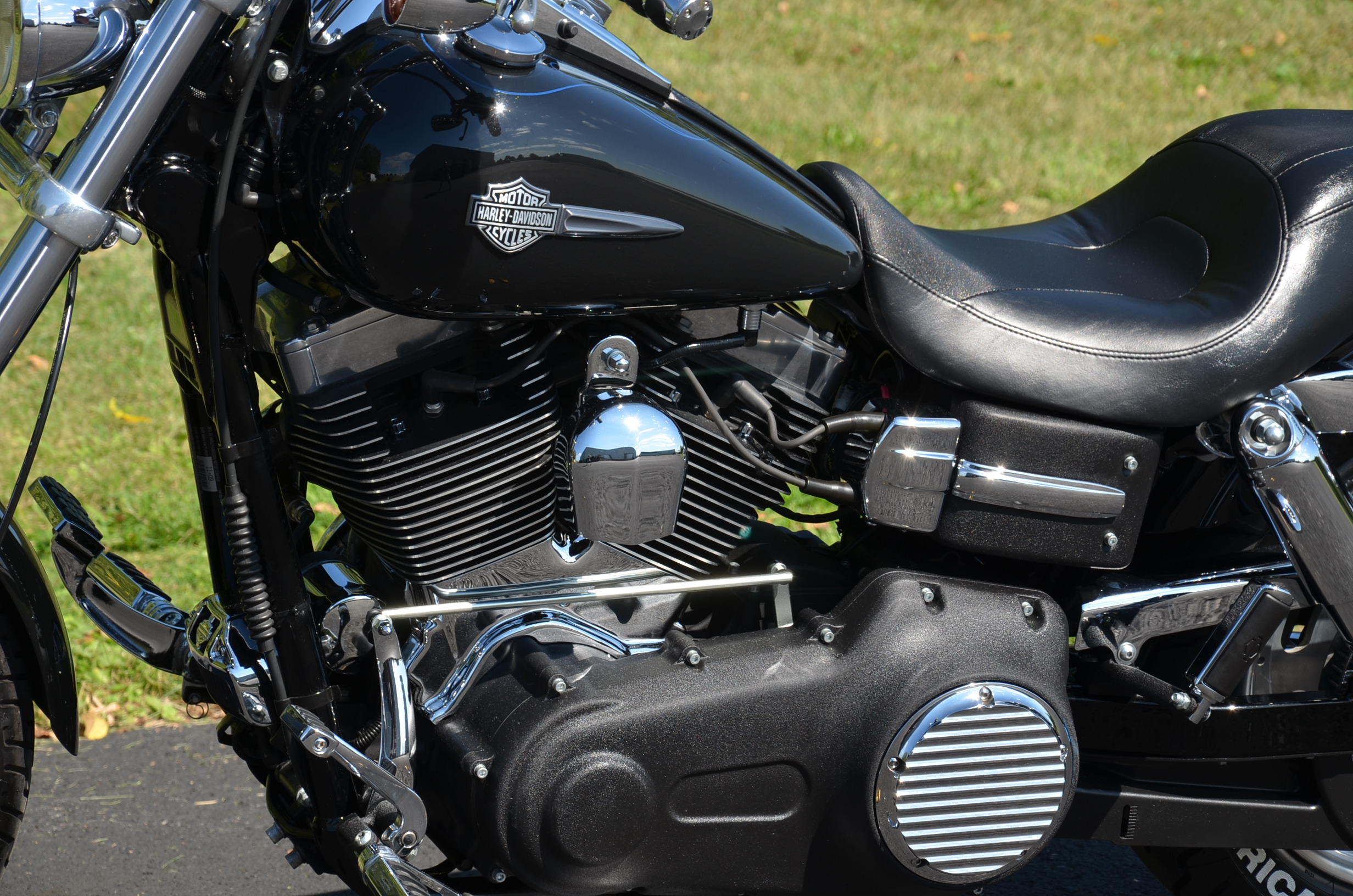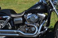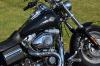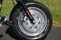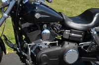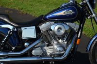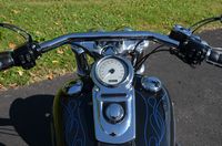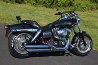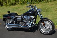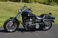 Beautiful local one mature owner bike. Vivid Black w/ custom blue hand pinstriped flames. 96" motor, & 6-speed. The Fat Bob comes from the factory with the blacked out motor, black lower legs/sliders, dual 4 piston calipers, floating dual disc rotors, 5 Gallon gas tank, slotted aluminum wheels, 180 series wide tire, Bobtail rear and sport front fenders, covered high performance shocks, twin headlamps, low profile dash, Tommy Gun exhaust, & much more. Extras include: Rush high performance mufflers, 1.25” Chubby one-piece drag bars with internal wiring, Kuryakyn ISO grips w/ throttle boss, custom mirrors, logo gas cap, chrome master cylinder cover, clock, Arlen Ness oil pressure gauge kit, Ness air cleaner insert, Ness Derby cover, Ness oil cap cover, Ness cam cover, forward controls with chrome front & rear pegs, chrome brake pedal, chrome shift peg, chrome voltage regulator cover, black short sissy bar, chrome luggage rack, turn signal bezels w/ visors, chrome taillight cover, deluxe headbolt covers, chrome motor base cover, & chrome inspection plate. 19,656 miles. Fully serviced, fresh fluids, & detailed. Only $9,995