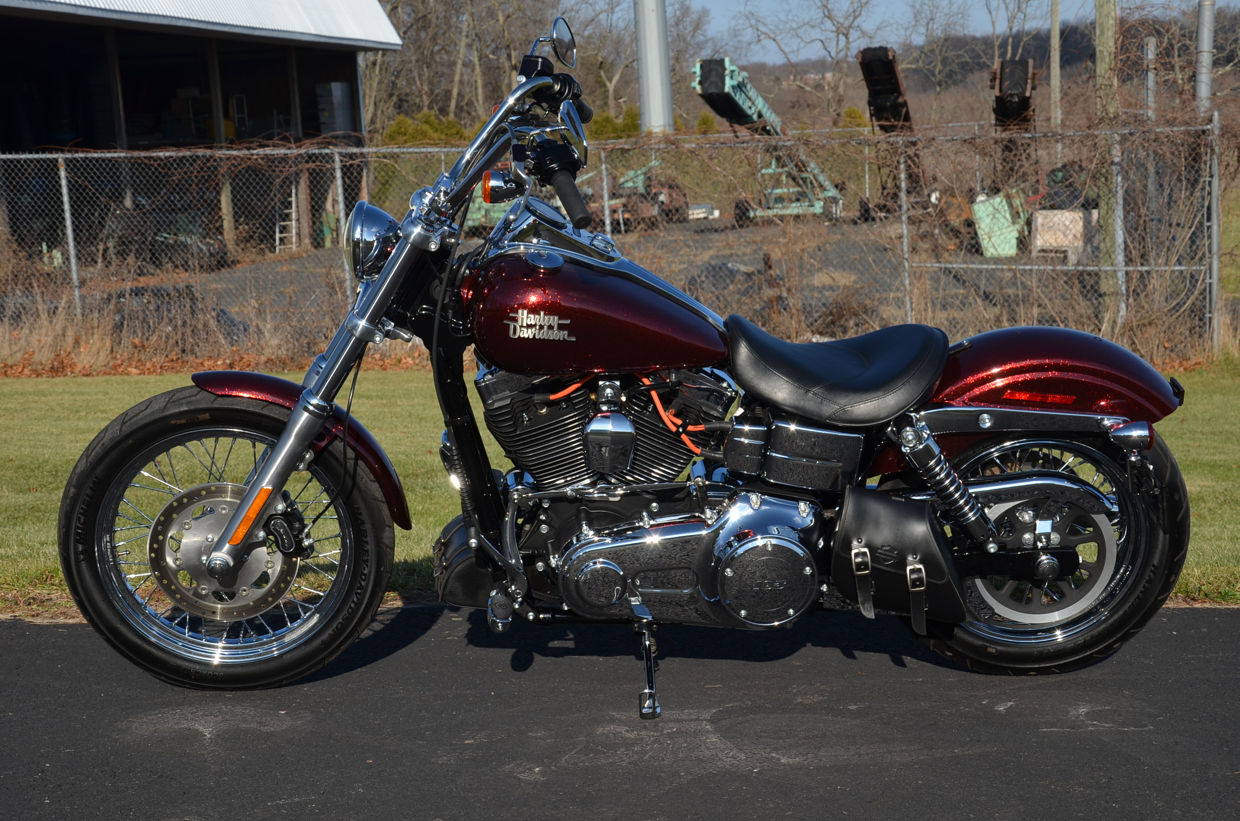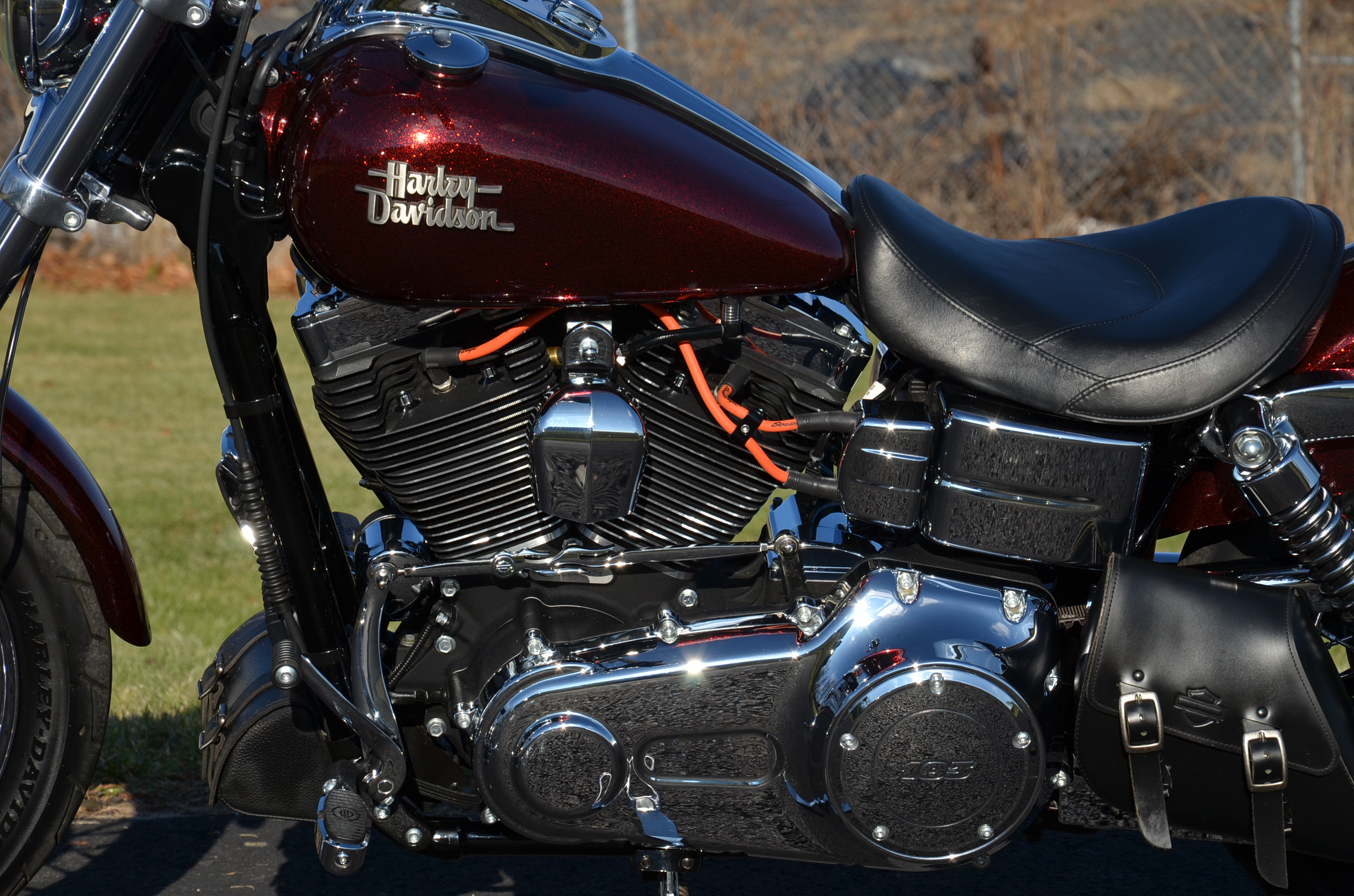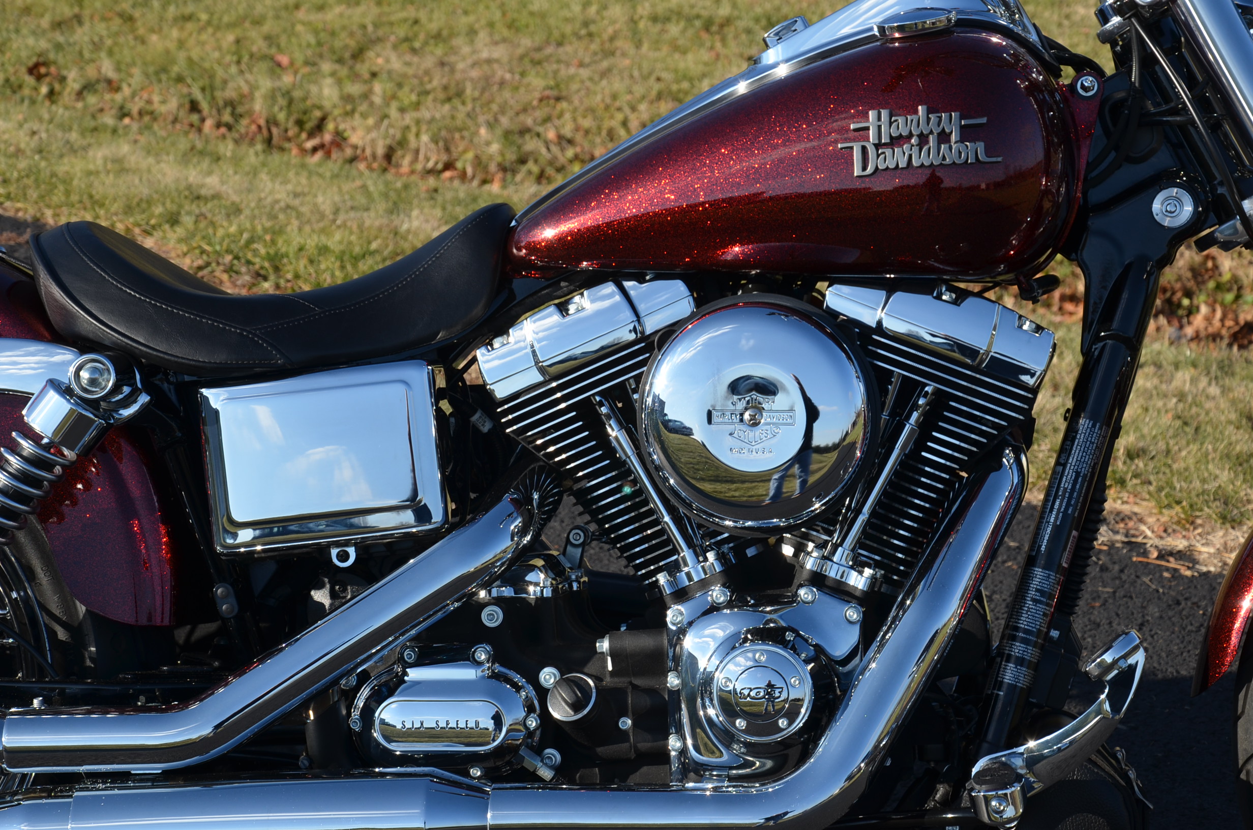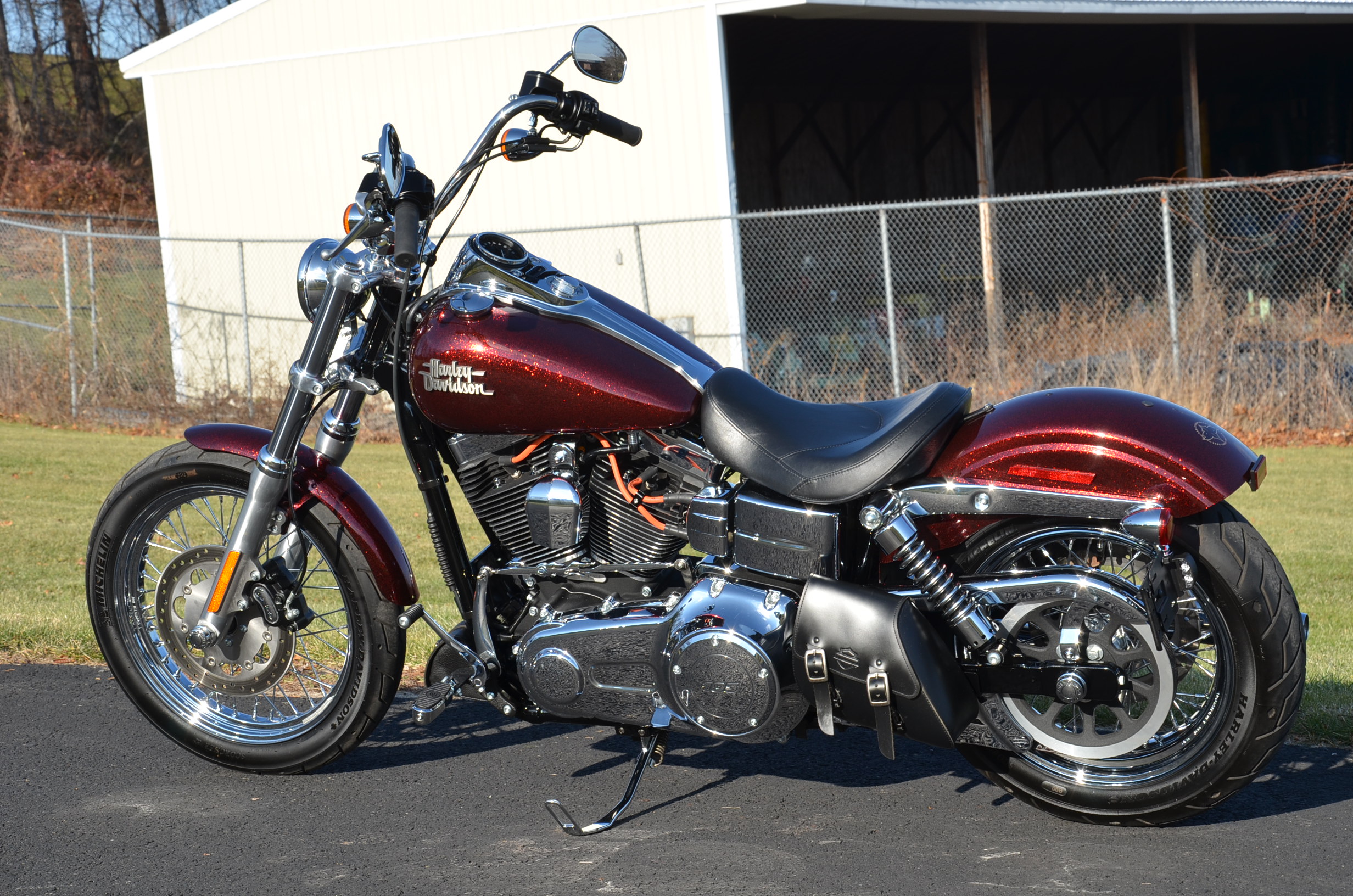 Beautiful local one owner bike with only 1,393 miles. This one is the FXD "P" which has the optional 103" motor which was not standard. 6-speed tranmission. Hard Candy Custom special Red metallic flake paint job from the factory. The 2013 has many new styling feautures not found on previous models. Extras include factory optioned chrome wheels, factory optioned forward controls, nostalgic air cleaner cover, solo seat, logo axle covers, chrome caliper inserts, rigid mounted leather tool & side bags, custom shift rod, Screamin' Eagle wires, chrome pegs, & much more. Nicer than new! Fully serviced, detailed, & ready to ride! Only $11,995