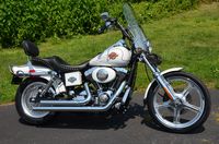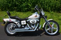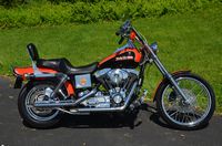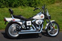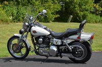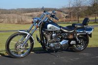This bike has just been restored and has brand new gloss black paint. Don't let the year fool you. This is a special bike and we brought this bike up to excellent condition. Ready to ride anywhere. The FXR’s are becoming very difficult to find. Destined to appreciate in value. Many people still believe the FXR frame is the best Harley design Willie G ever came up with. 1984 was the 1st year for the legendary Evolution 80” motor. This bike is unique and has many extras like fatbob tank, bobtail fender, Fatboy front fender, FXST wide glide dual disc front end, 16” chrome wheels wheels, S&S carburetor, chrome drag bars with internal wiring, chrome switch housings, chrome grips, chrome forward controls, Screamin’ Eagle ignition, GMA rear caliper, Progressive lowering shocks, mini speedo, chrome oil tank, chrome pegs, drag pipes, & LePera barebones seat. Only $8,995