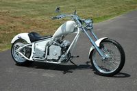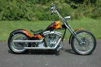 2006 LOGIC VOODOO 250 TIRE SOFTAIL CHOPPER 120" MOTOR RC Components frame is stretched 5 inches out and 6 inches up and raked 43 degrees, the American Suspension trees, which are raked 6 degrees. Ultima polished 120" motor and six-speed. SORRY, IT'S SOLD |